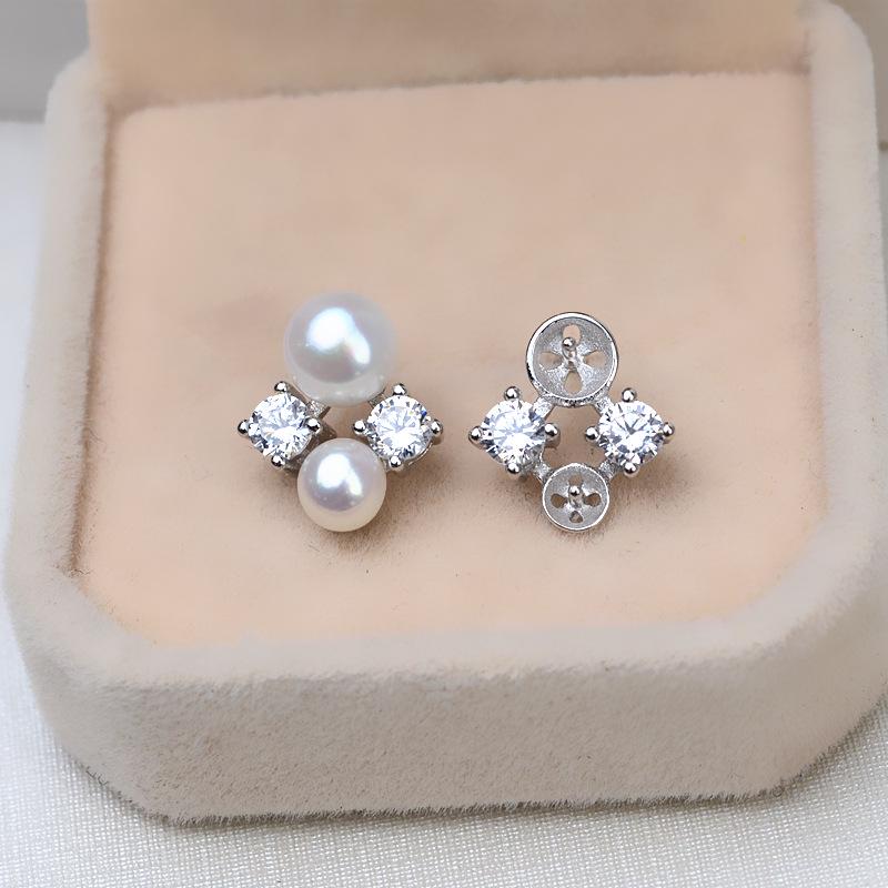 Серьги из серебра S925 с двумя бусинами в форме цветка и держателем жемчуга своими руками 1185