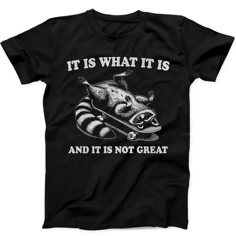 230 г/м² 100% хлопок Это то, что есть, и это не здорово Енот Смешной подарок Черная футболка B242