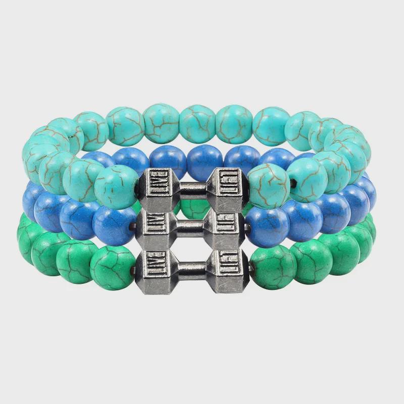 Мужской браслет-штанга из черного сплава с бирюзовыми бусинами — купить товар онлайн с бесплатной доставкой по всему миру!