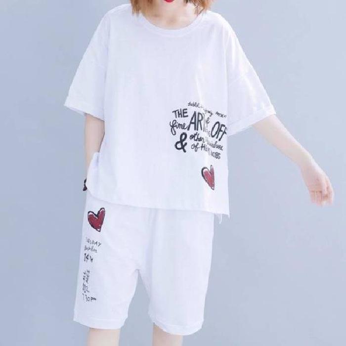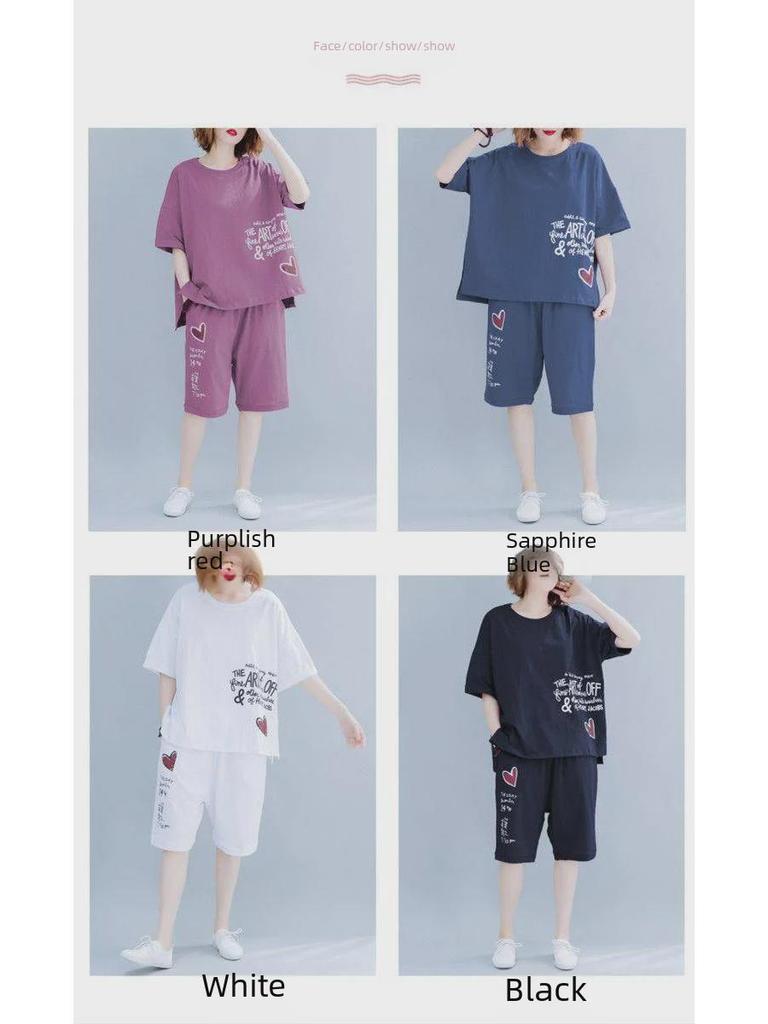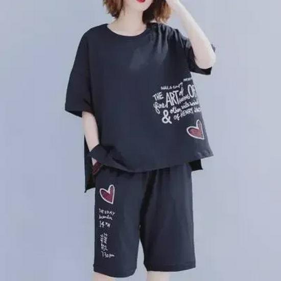 Женский летний повседневный костюм из двух частей с короткими рукавами и шортами больших размеров