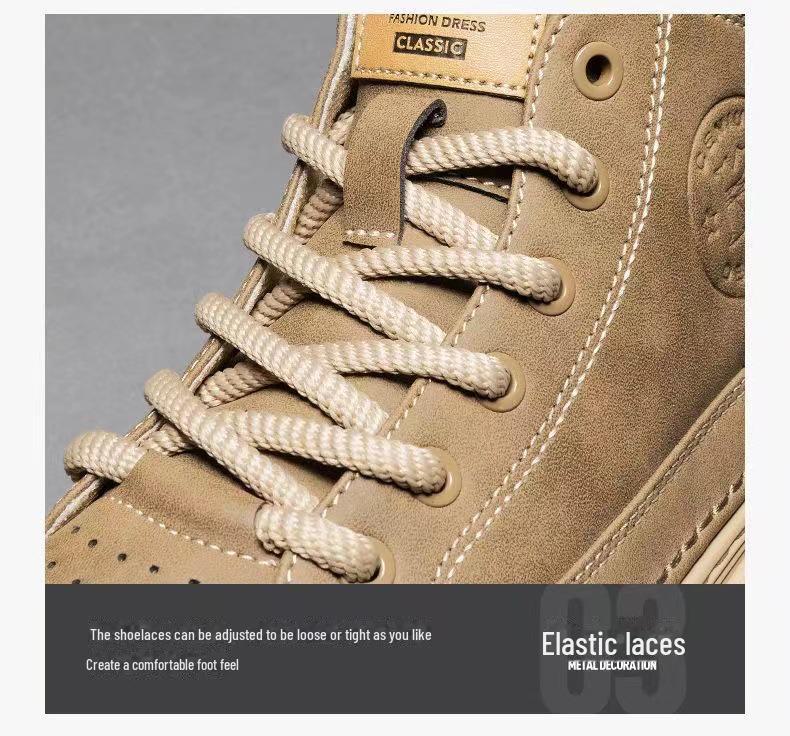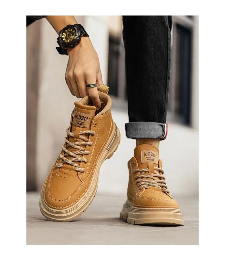 Мужская повседневная обувь в стиле ретро с высоким берцем, осень 2024 г.: Увеличение высоты, толстая подошва, универсальная рабочая одежда для активного отдыха