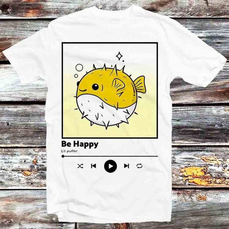 230 г/м² 100% хлопок Be Happy Lil Puffer Fish футболка винтажная ретро крутой подарок мужская женская унисекс мультфильм аниме топ футболка B944