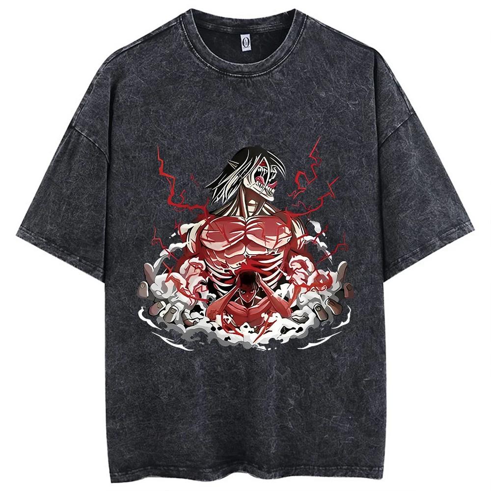 Футболка с рисунком из аниме «Атака титанов», свободная уличная футболка с винтажным принтом, стираная футболка с коротким рукавом, летние хлопковые топы