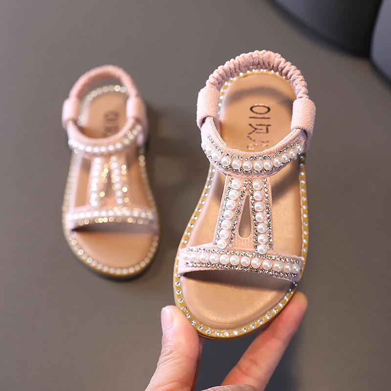 Летние босоножки в римском стиле с жемчугом и бриллиантами для девочек — туфли принцессы с открытым носком, корейский дизайн