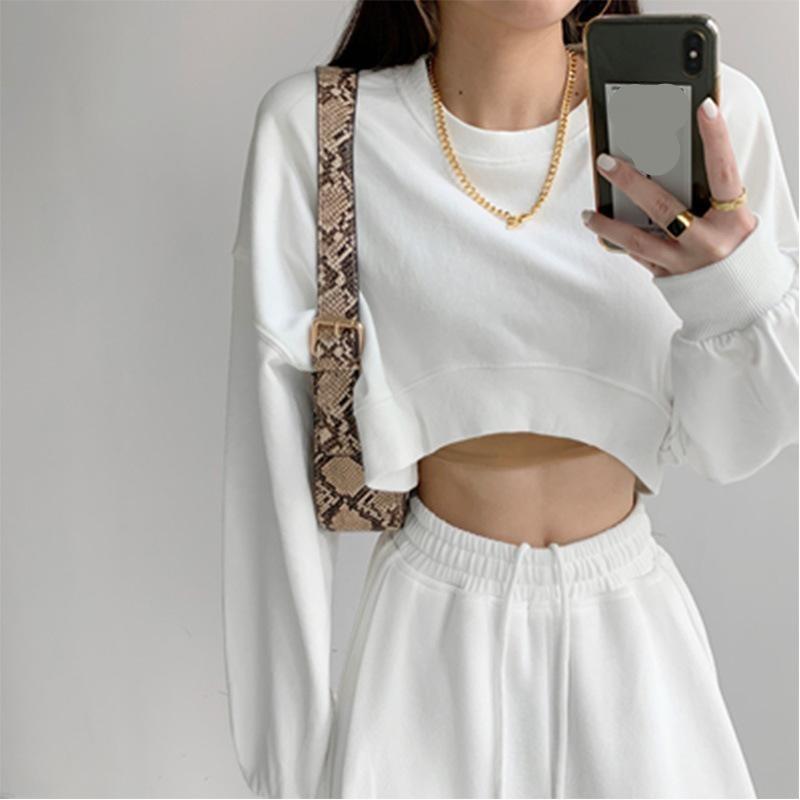 Женский короткий свитер, осенний однотонный свободный топ с круглым вырезом