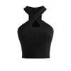 Новый сексуальный топ на бретелях, вязаный укороченный топ с бретелькой на шее, женские летние майки с перекрестными ремешками, модный женский укороченный жилет без рукавов
