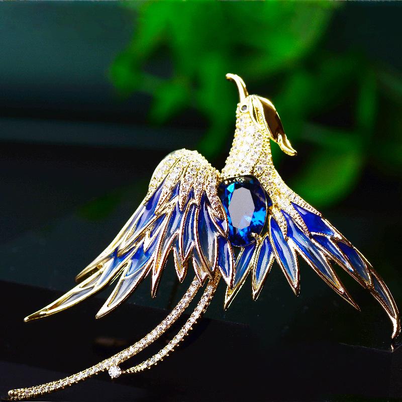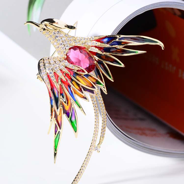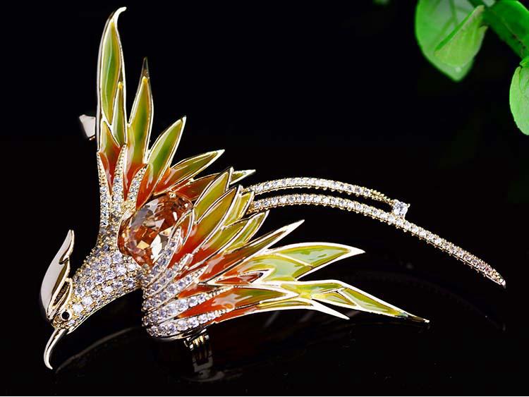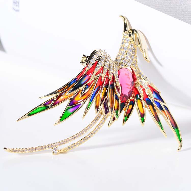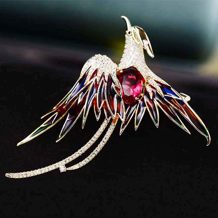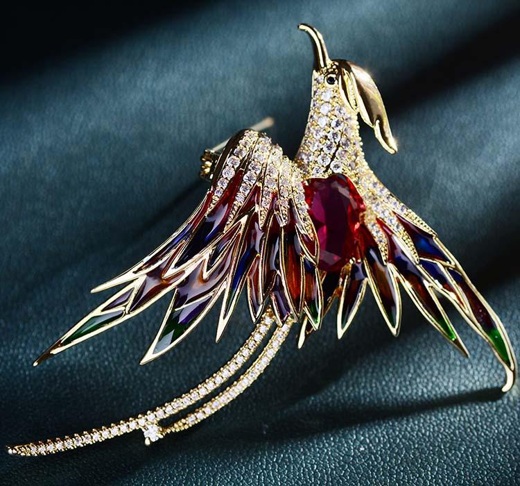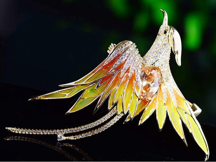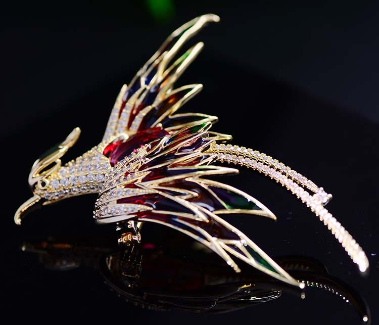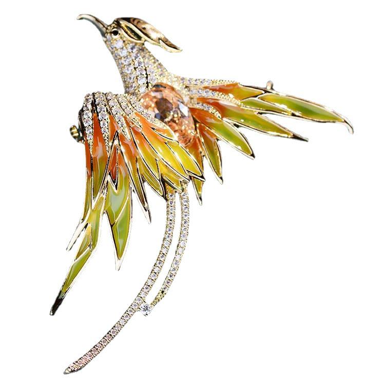 Корейская брошь Феникс 2021 года — позолоченный дизайнерский аксессуар с отделкой в виде капель масла
