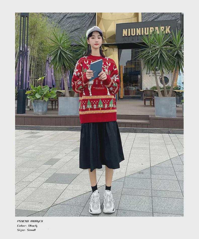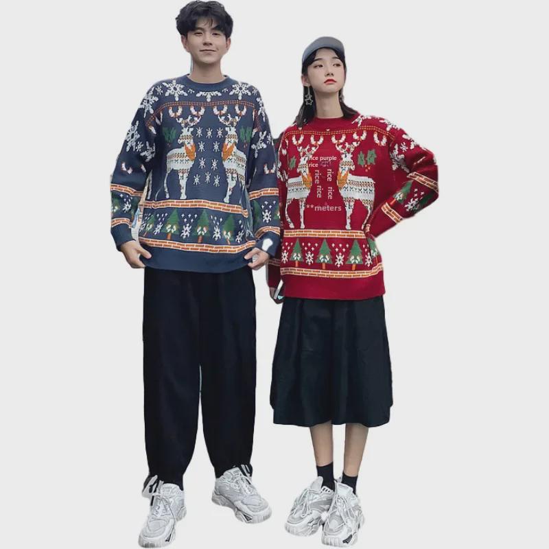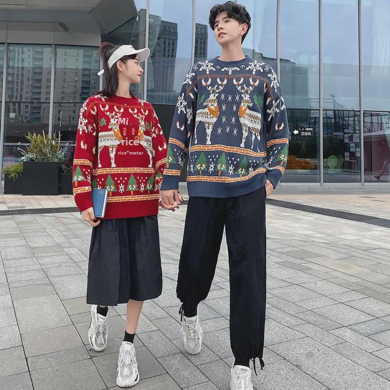 Рождественский свитер с лосем: Уютный, свободный корейский стиль для пар