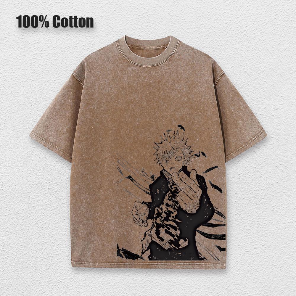 Аниме принтованная винтажная хлопковая футболка мужская футболка большого размера Harajuku летняя футболка с коротким рукавом женская винтажная выстиранная футболка
