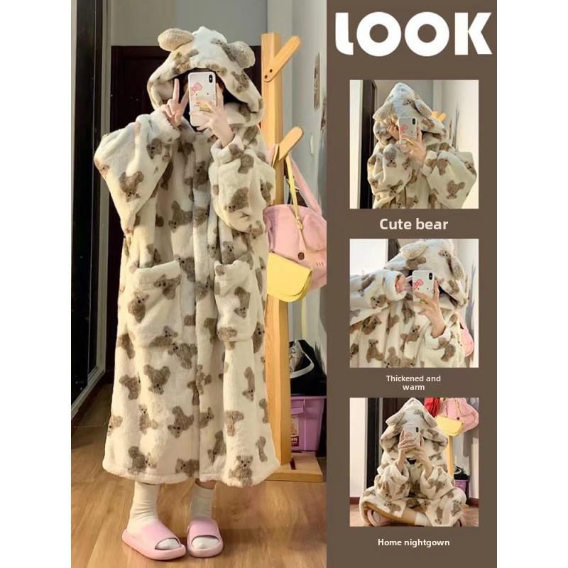 Популярная зимняя ночная рубашка с рисунком медведя - теплая, милая, утолщенная пижама из кораллового флиса — купить товар онлайн с бесплатной доставкой по всему миру!