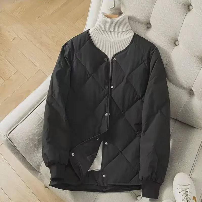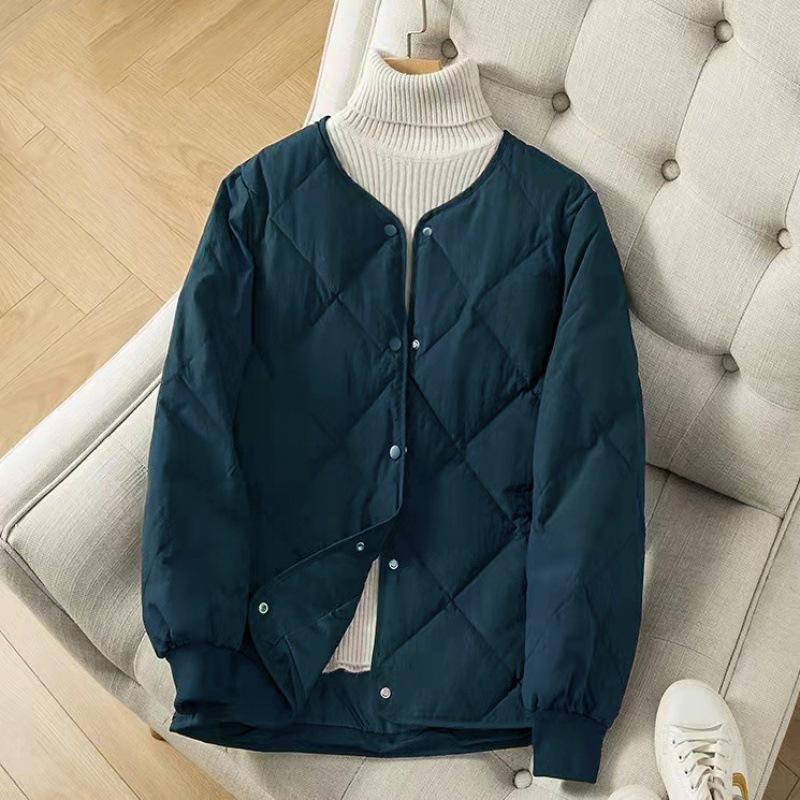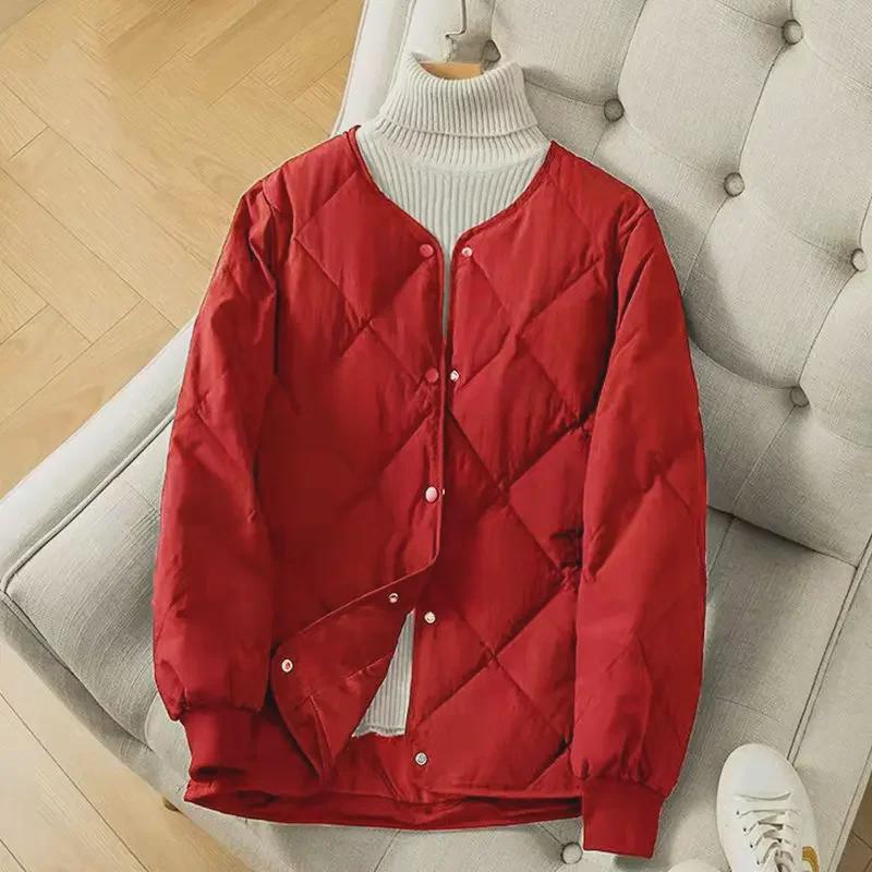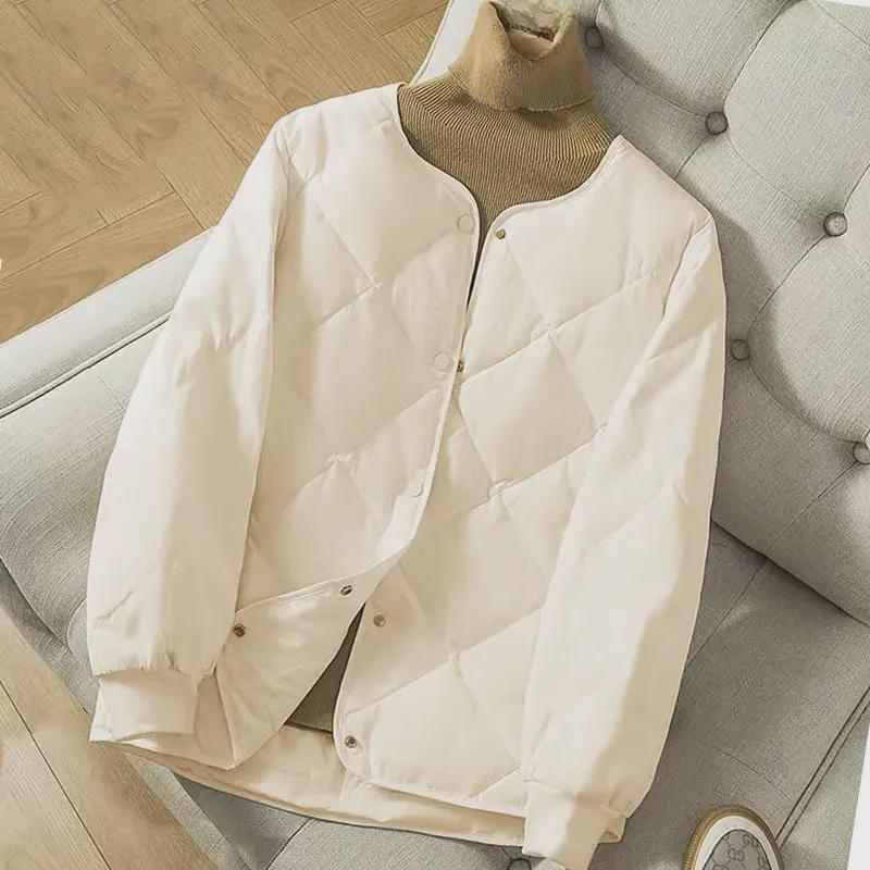 Эта женская куртка создана для максимального комфорта и стиля, отличается легким дизайном без воротника и ромбовидной простежкой.. Изготовлен из высококачественного хлопкового наполнителя, обеспечивает тепло без утяжеления.. Куртка изготовлена из хлопкового материала, обеспечивающего мягкость и уют при контакте с кожей.. Круглый вырез и свободный крой делают его идеальным выбором для студентов, которые ищут повседневную, но модную верхнюю одежду.. Тонкая верхняя одежда идеально подходит для ношения в качестве слоя одежды или в мягкую погоду, гарантируя комфорт в течение всего дня.