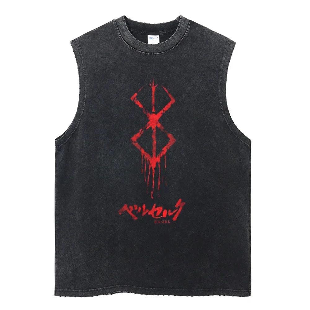 Жилет Berserk Anime Print Vest, летний хлопковый жилет, мужская стираная ретро-футболка без рукавов