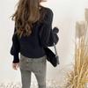 Женский свитер в стиле ретро с квадратным воротником и переплетенными спицами — свободный крой, утягивающий талию, идеально подходит для осени/зимы