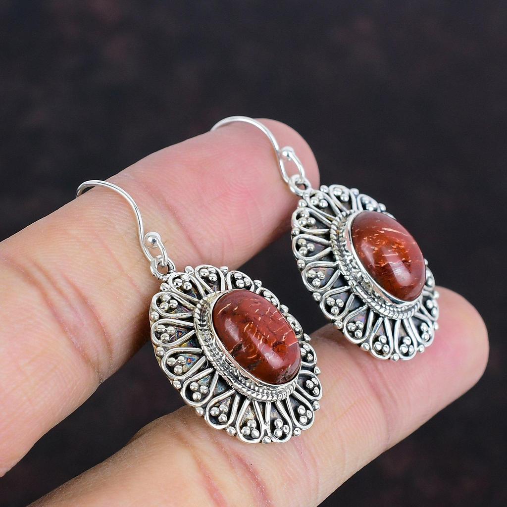 Серьги из красной змеевидной яшмы Винтажные серьги Серьги из стерлингового серебра 925 пробы Ювелирные изделия с драгоценными камнями Изящные серьги Подарки на помолвку Серьги ручной работы