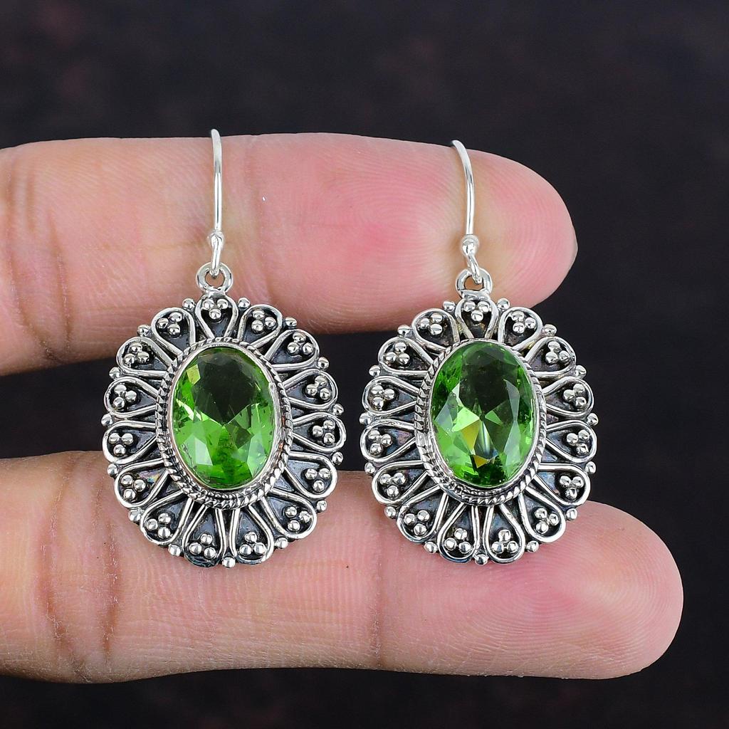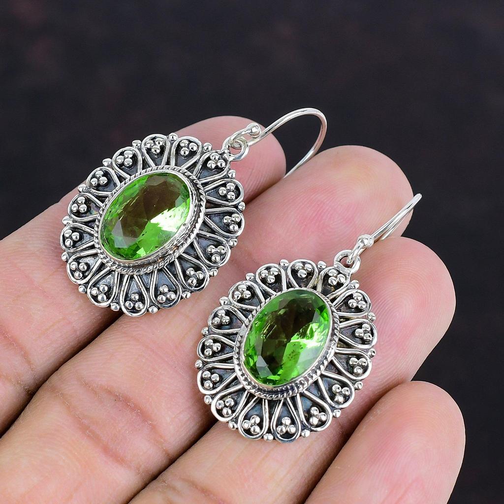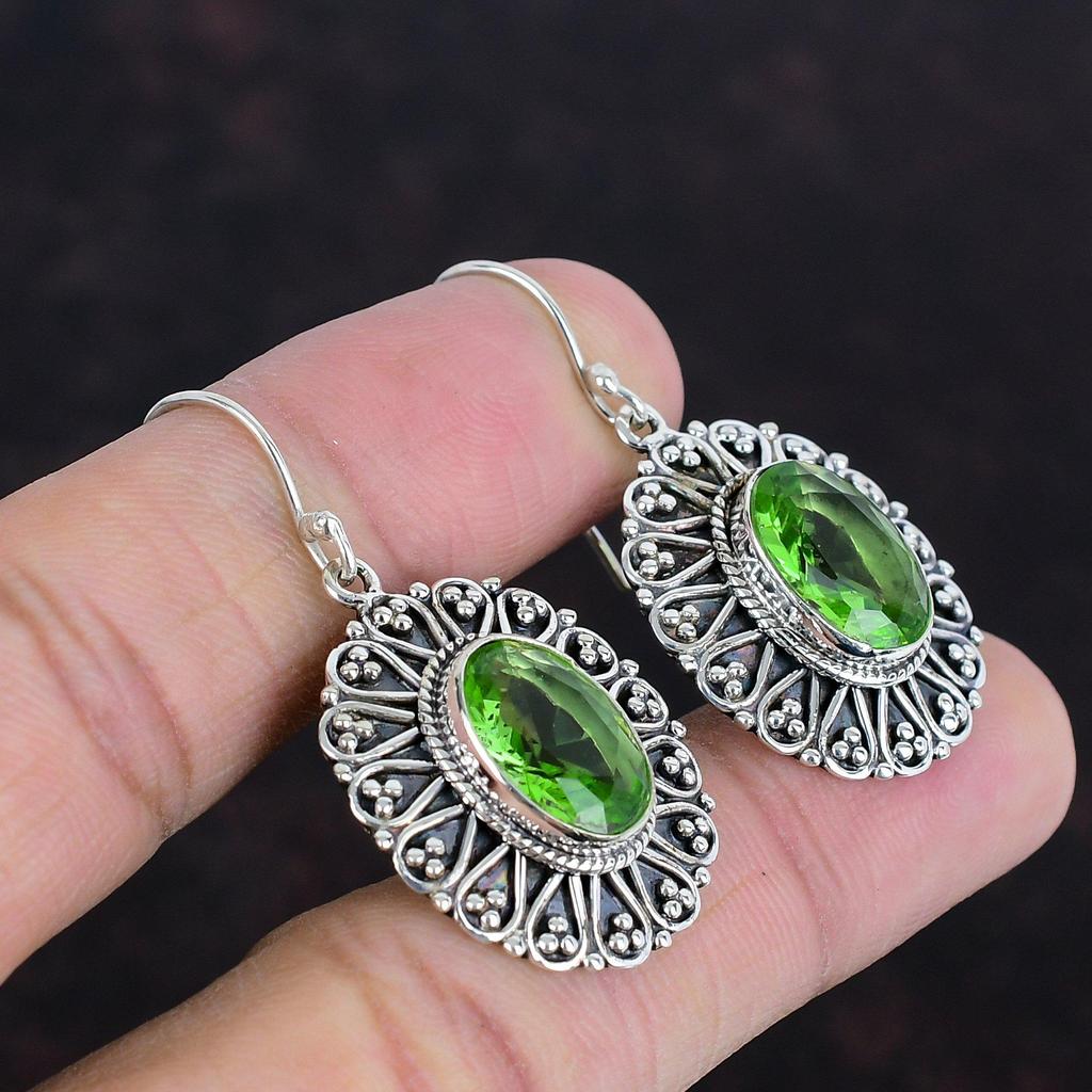 Серьга с ограненным зеленым аметистом, серьга с натуральным драгоценным камнем, серьга из стерлингового серебра 925 пробы, дизайнерское украшение, ручная работа, винтажная серьга, подарки для жены