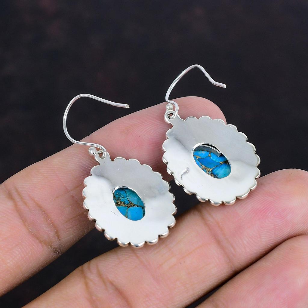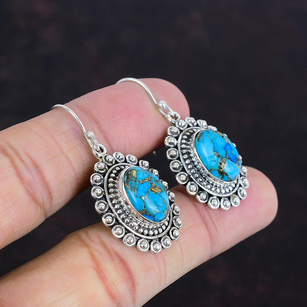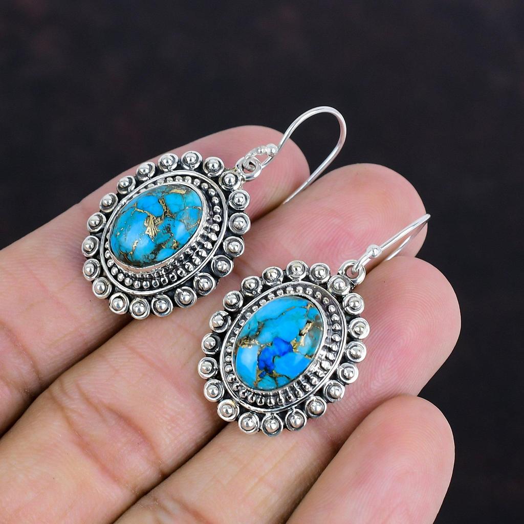 Медно-голубая бирюзовая серьга, винтажные серьги с драгоценными камнями, серьги из стерлингового серебра 925 пробы, антикварные ювелирные изделия, висячие серьги ручной работы, подарки на помолвку