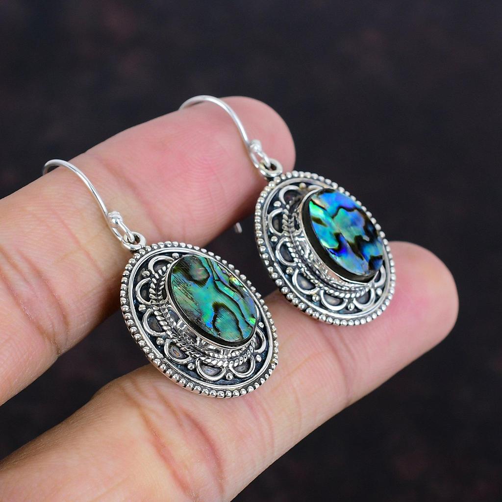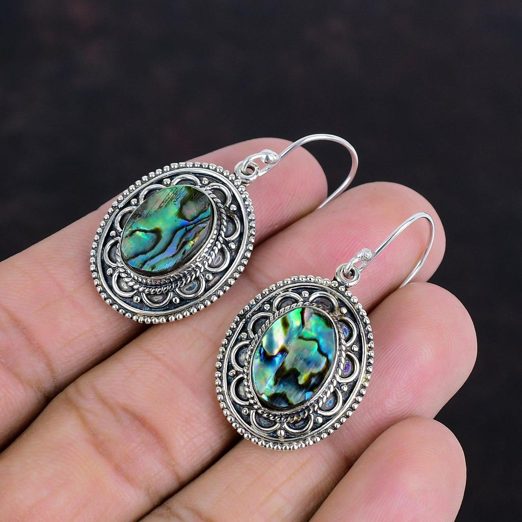 Серьги из ракушек Abalone, винтажные серьги с настоящими драгоценными камнями, серьги из стерлингового серебра 925 пробы, серьги ручной работы, висячие серьги, подарки для жены