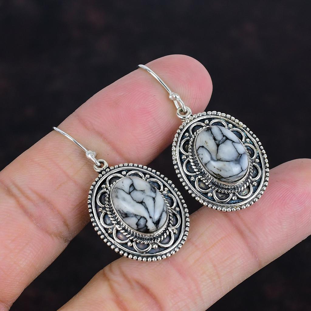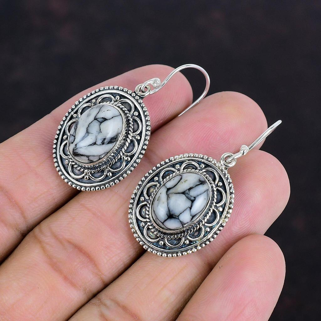 Серьги из настоящего драгоценного камня Pinolith Jasper, серьги из стерлингового серебра 925 пробы, винтажные серьги, дизайнерские ювелирные изделия ручной работы, висячие серьги, подарки для нее