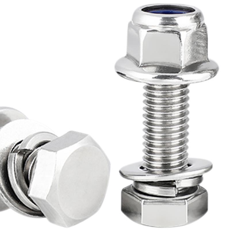 Комплект из шестигранных болтов и гаек из нержавеющей стали 304 с нейлоновой фланцевой гайкой и шайбой