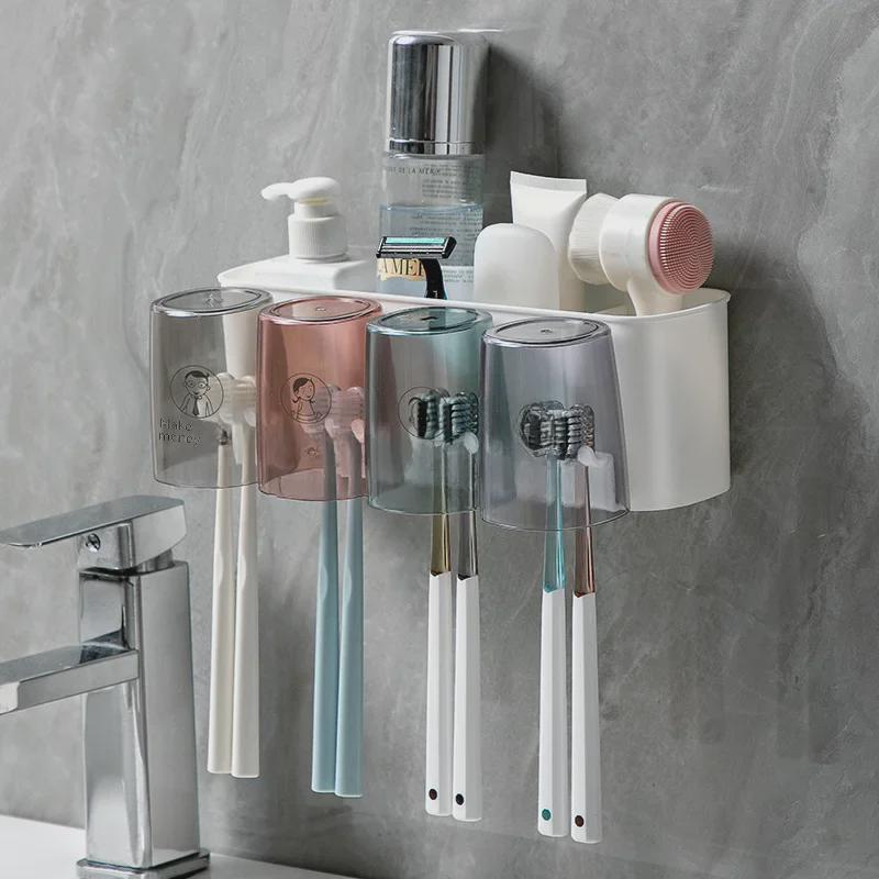 Многофункциональный настенный держатель зубных щеток с прозрачным стаканом