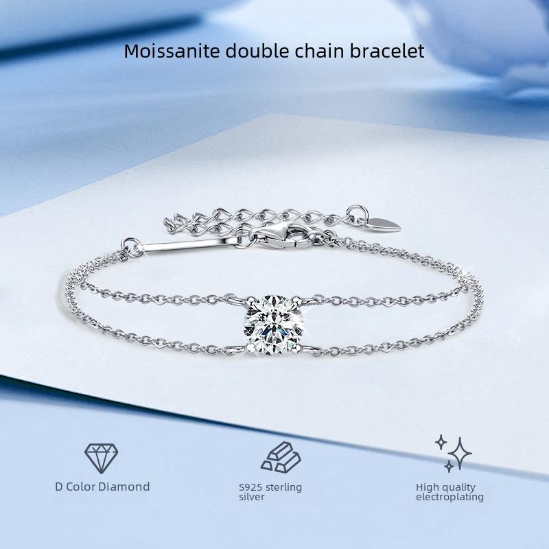 Браслет с четырьмя когтями из муассанита 2024 года: Светлое роскошное серебро 925 пробы