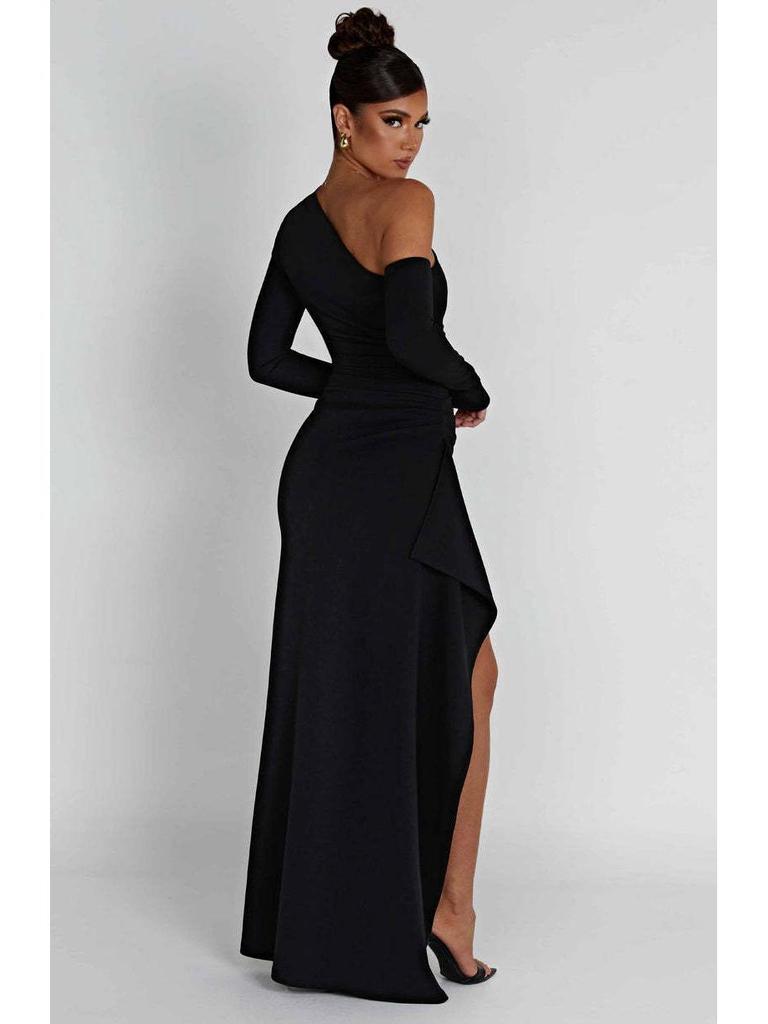 Длинное платье Cross-Border Осень/Зима 2024 года с открытыми плечами и разрезом