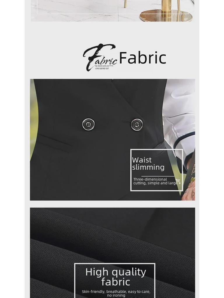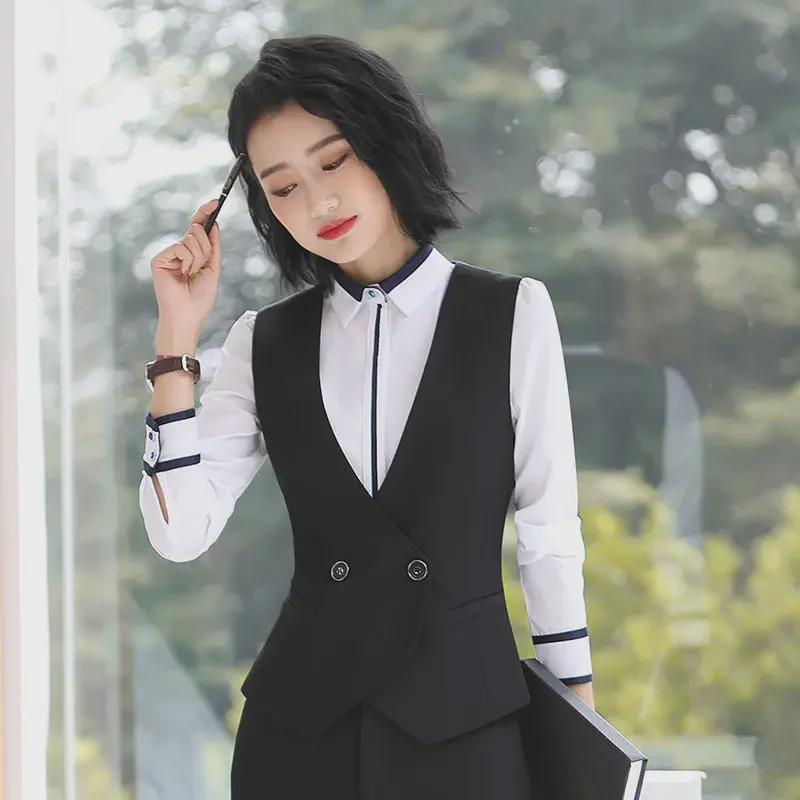 Дополните свой деловой гардероб этим женским жилетом-тройкой черного цвета на весну, который подойдет как для профессиональной, так и для гостиничной работы.. Этот стильный жилет имеет классический вырез горловины и однотонный узор, что придает ему элегантный и изысканный вид.. Изготовленный из высококачественного полиэстера, он обеспечивает комфорт и долговечность в течение всего напряженного дня.. Спортивный стиль добавляет нотку современности, что делает его идеальным выбором для женщин, которые ищут как функциональность, так и моду в своей рабочей одежде.