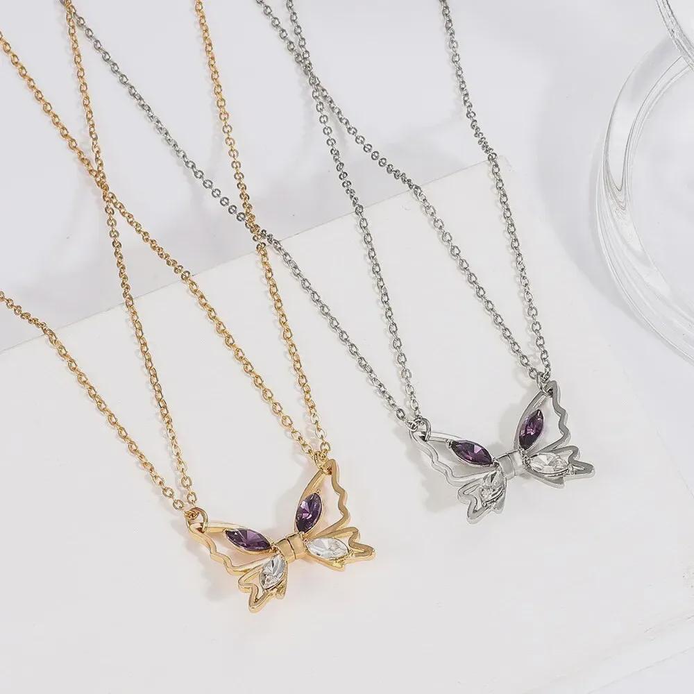 Парное ожерелье с магнитной бабочкой из циркония — креативный подарок для подруг
