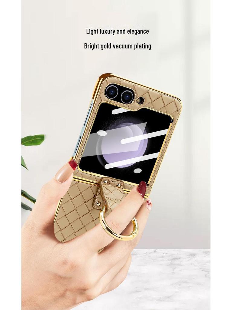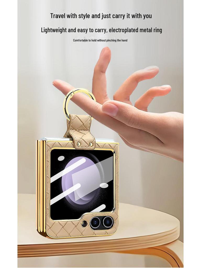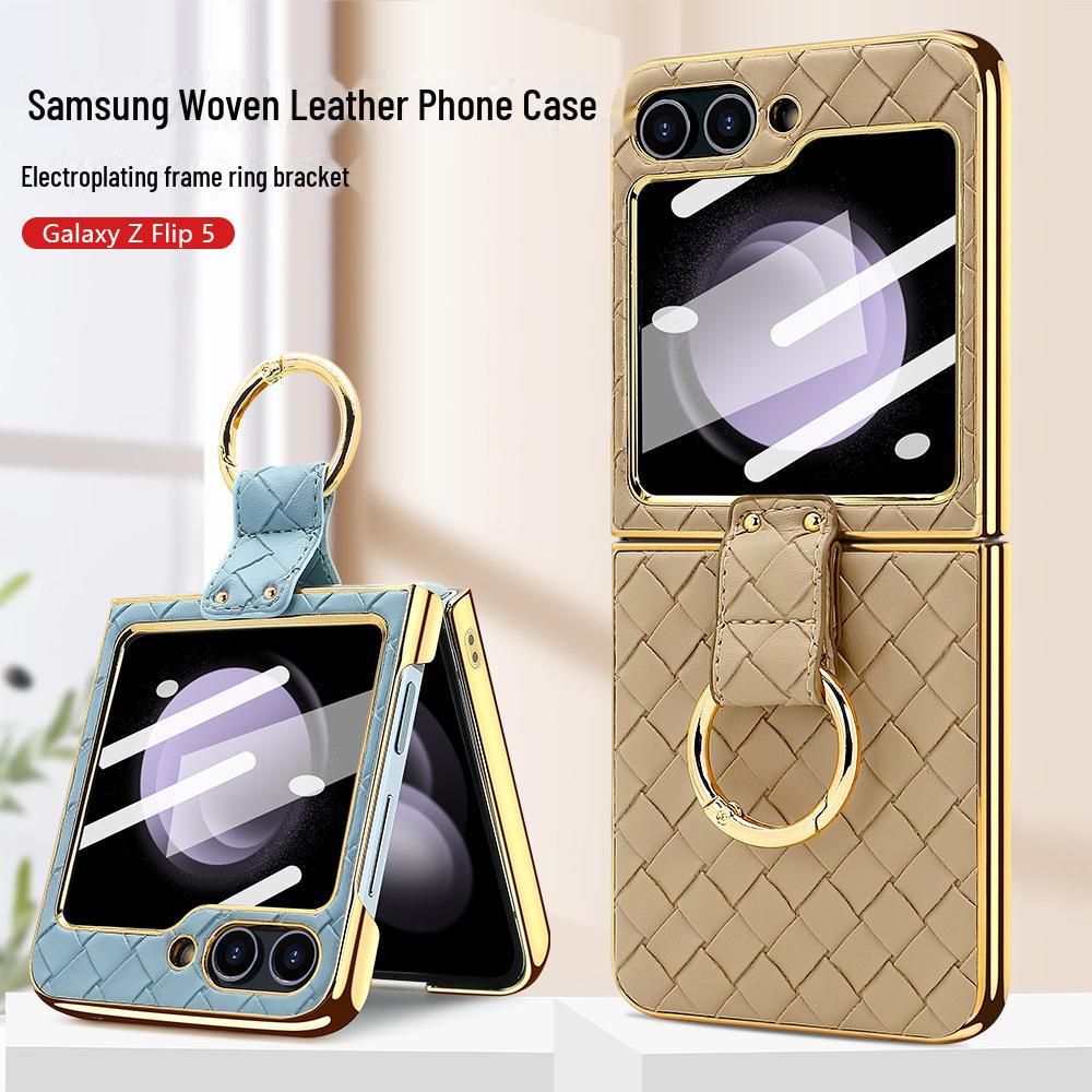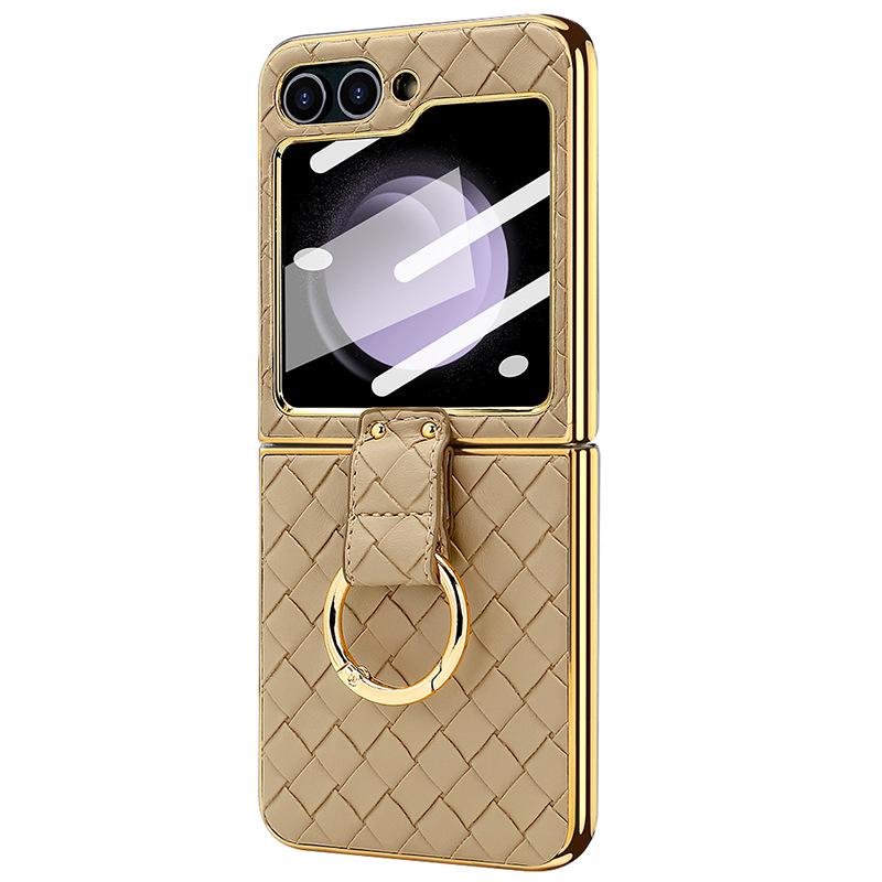 Чехол-кольцо из искусственной кожи с гальваническим покрытием и закаленной пленкой для экрана для Samsung Z Flip 4/5/6