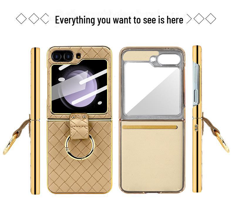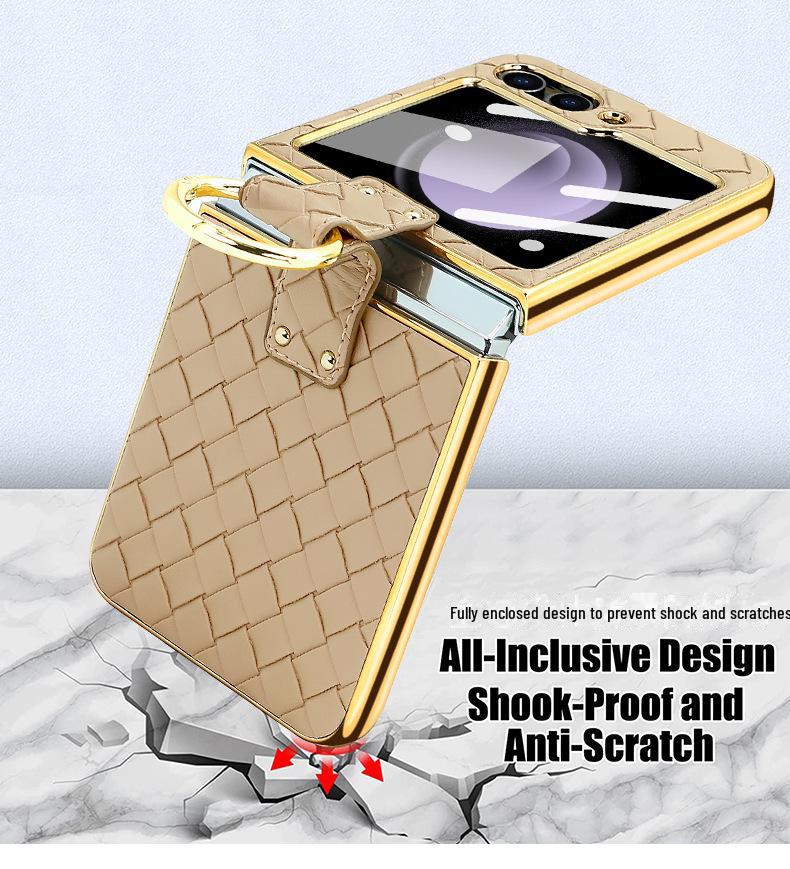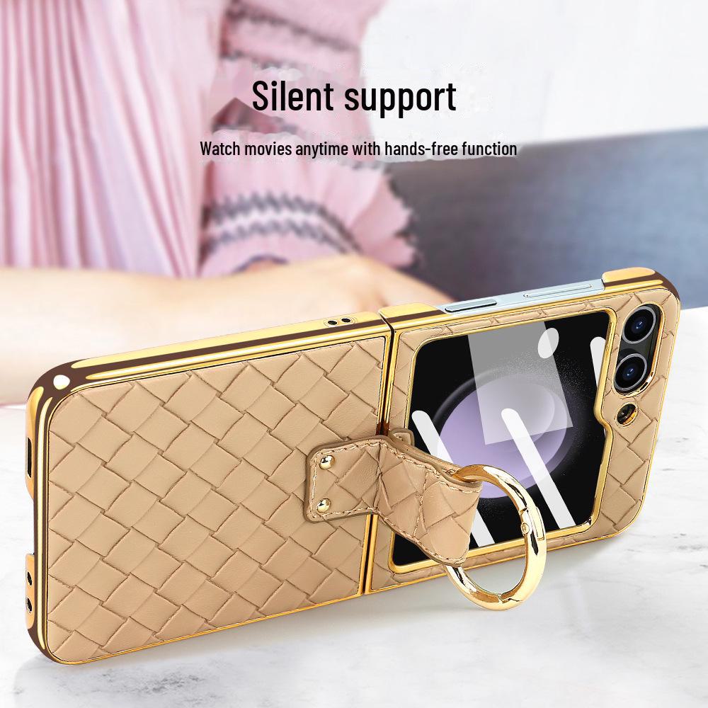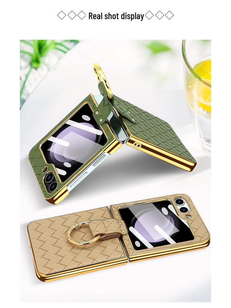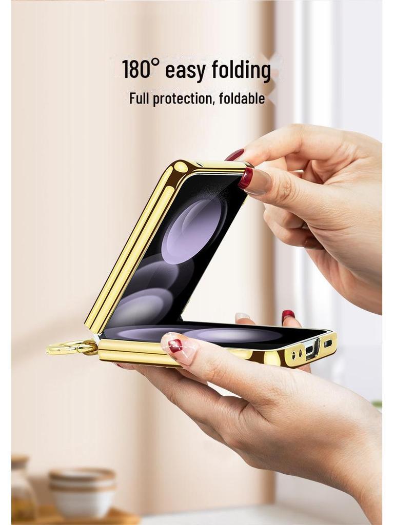 Чехол-кольцо из искусственной кожи с гальваническим покрытием и закаленной пленкой для экрана для Samsung Z Flip 4/5/6