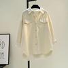 Женская утолщенная вельветовая куртка-рубашка средней длины с двойными карманами - весна 2022 г.