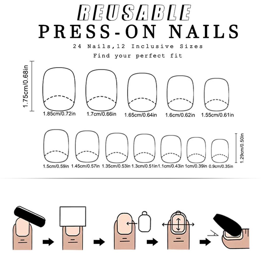 Квадратные накладные ногти, глянцевые накладные ногти, наклеивающиеся на ногти 12 размеров, 24 шт., советы по французскому маникюру для самостоятельного декора ногтей