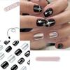 24 шт. квадратных накладных ногтей с черным градиентом, акриловые накладные ногти с блестками, полное покрытие, наклеенные на ногти