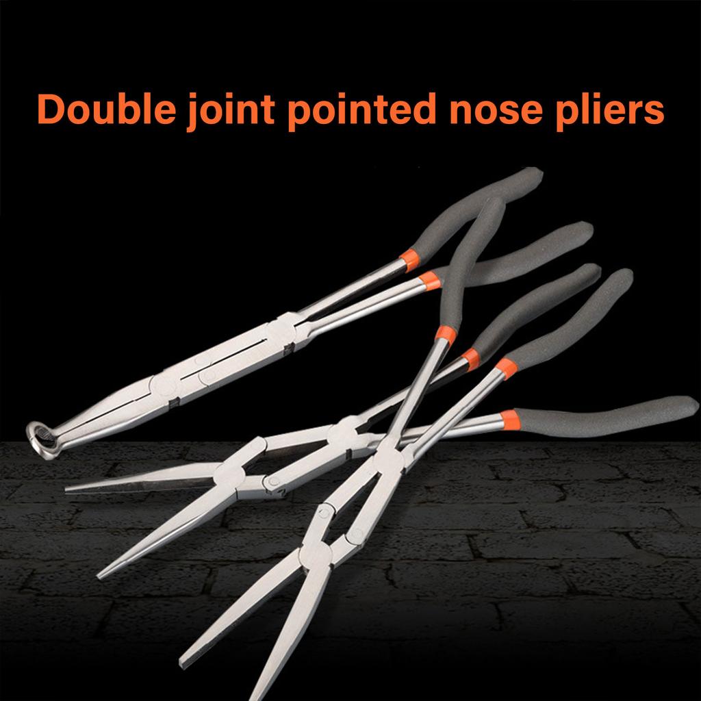 Откройте для себя универсальность этих двухшарнирных плоскогубцев, разработанных с использованием уникального механизма с двойным шарниром, который обеспечивает легкий доступ к труднодоступным местам, что делает их незаменимым инструментом для выполнения точных работ.