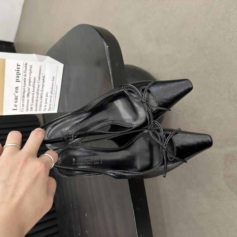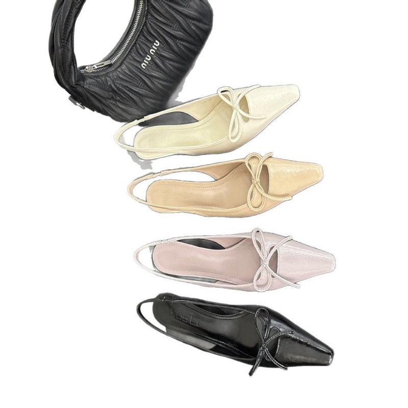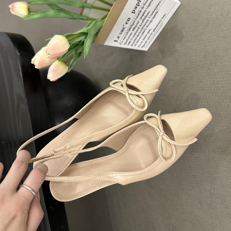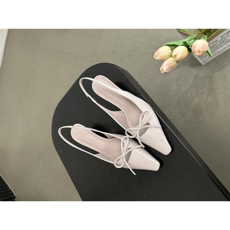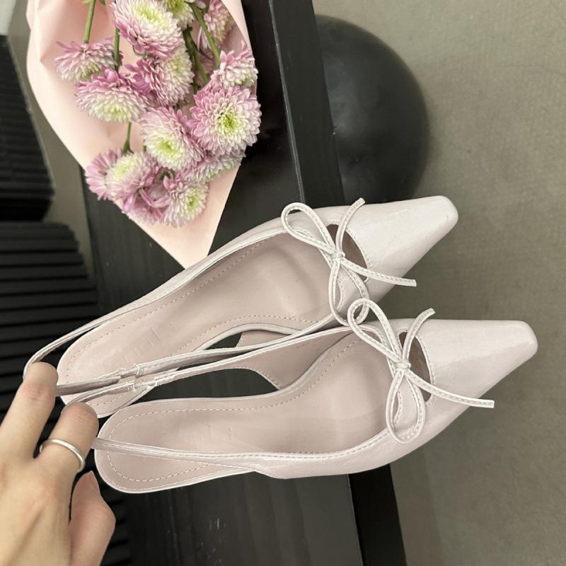 Весна И Лето Остроносые Сумка Голова Одинарные Туфли Женская Обувь Нежный Бант Шпилька Средний Каблук Легкий Вырез Задний Ремешок Сандалии