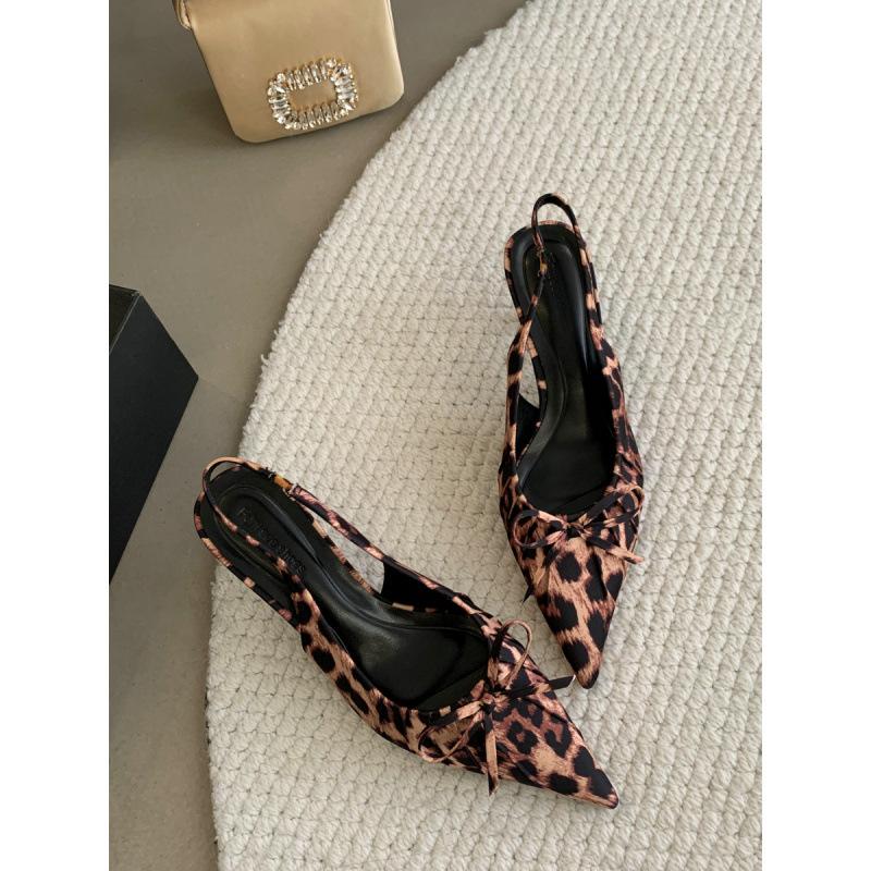 Niche Высокие каблуки с леопардовым принтом, сандалии с завязками на шее, туфли-сандалии Fairy, летние темпераментные туфли с острым бантом