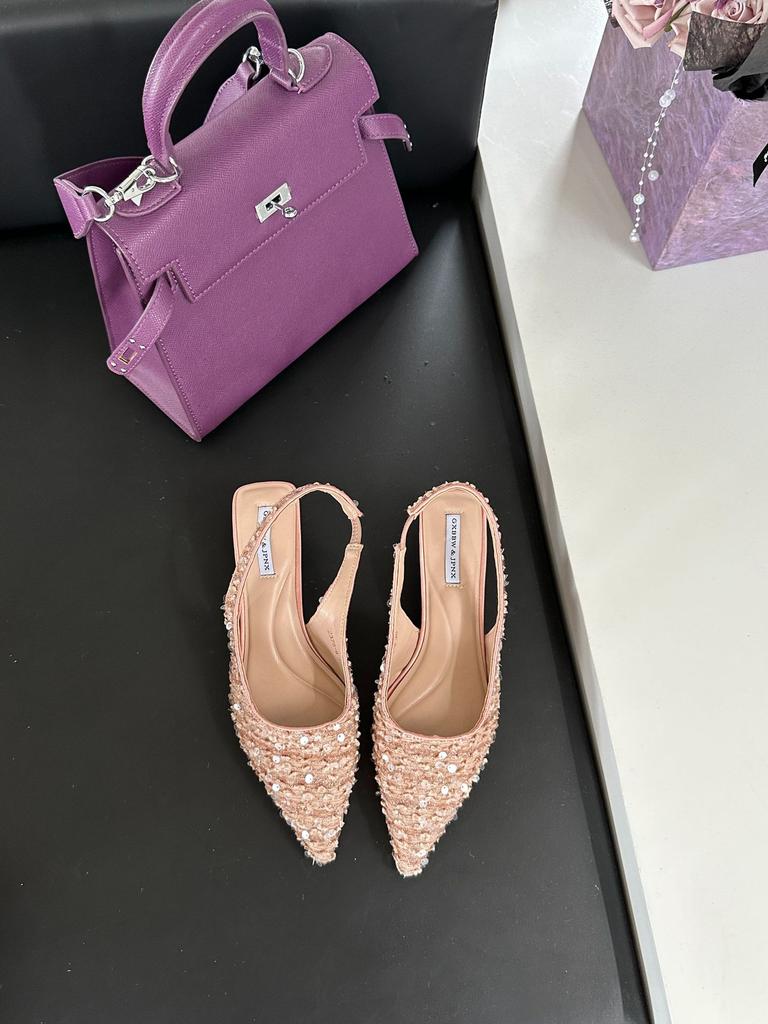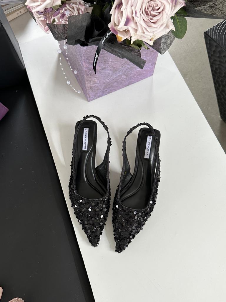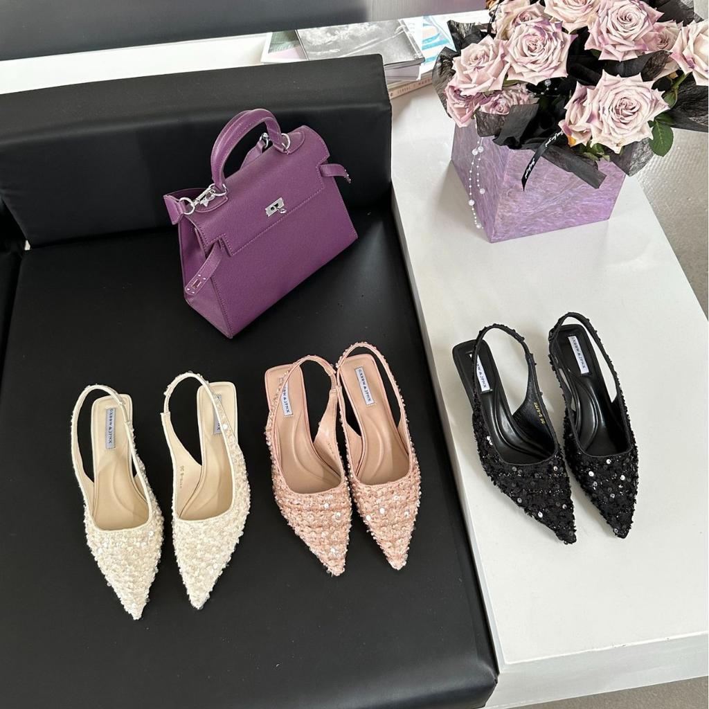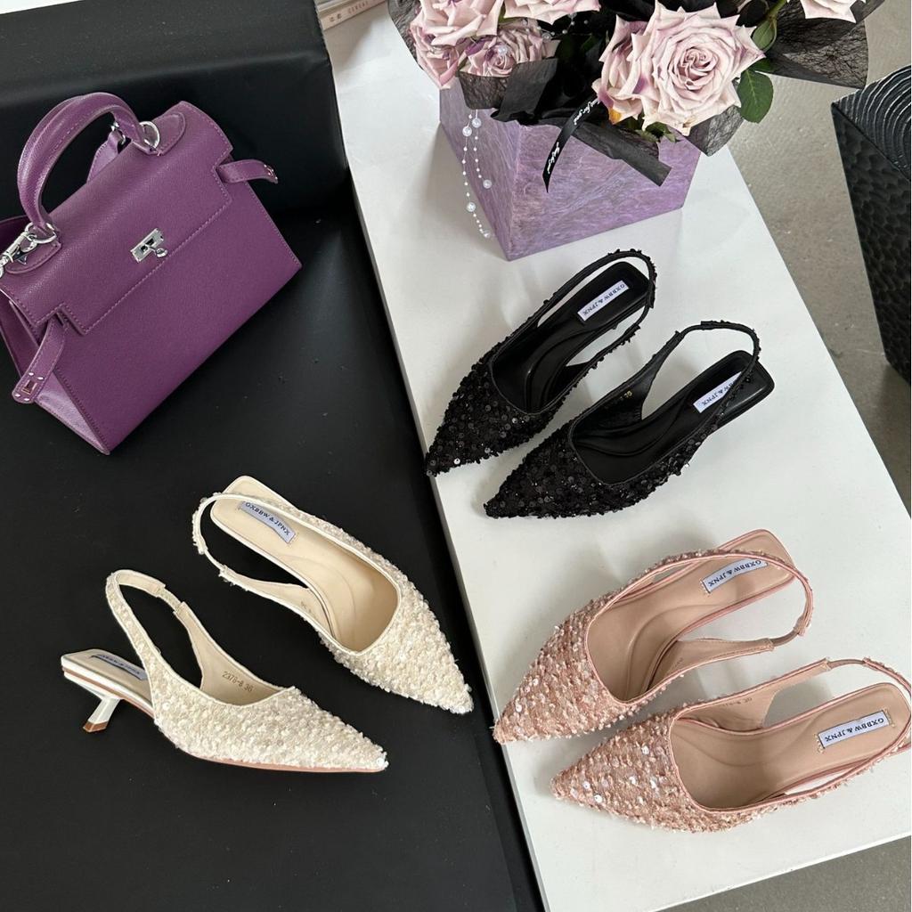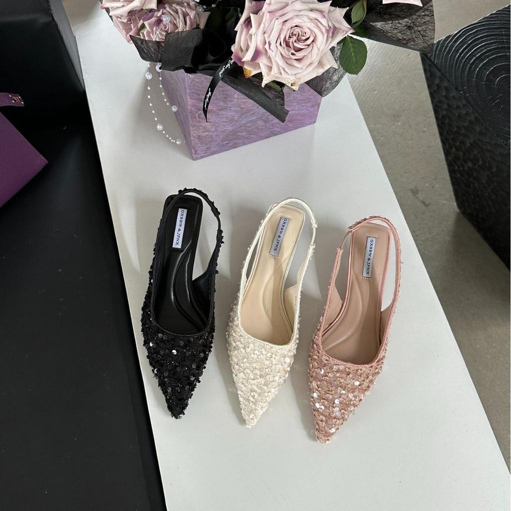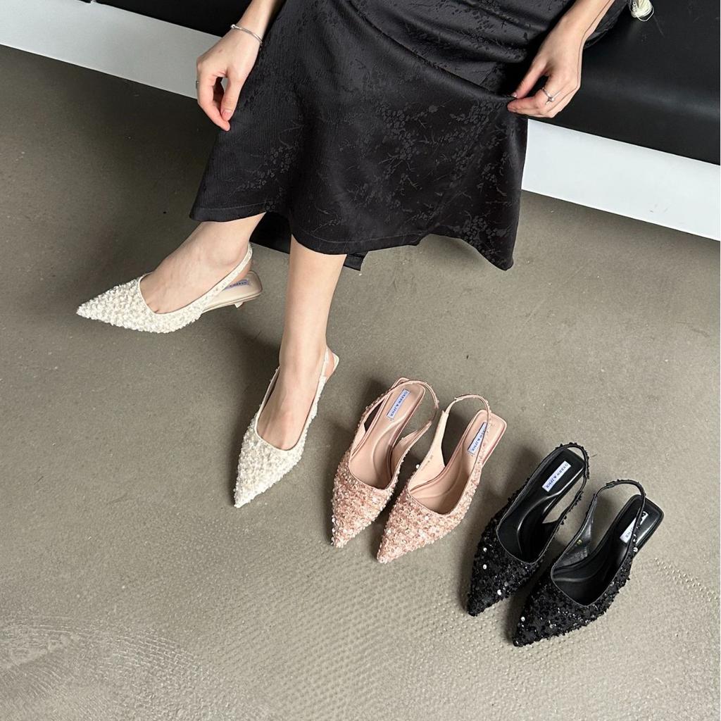 Сандалии с заостренным ремешком сзади, легкие блестки, низкий каблук, плоский каблук, сверкающие женские одинарные туфли