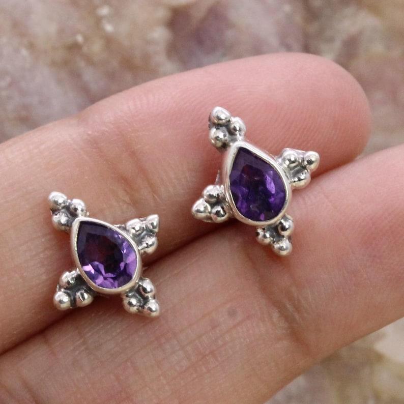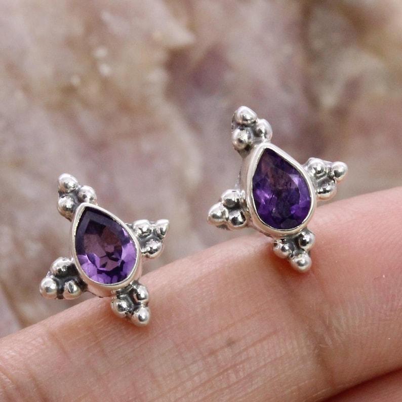 Аметистовый драгоценный камень-гвоздик, ювелирные изделия ручной работы, серебряные ювелирные изделия, модные ювелирные изделия, небольшой гвоздик, подарок для нее, серебро 925 пробы