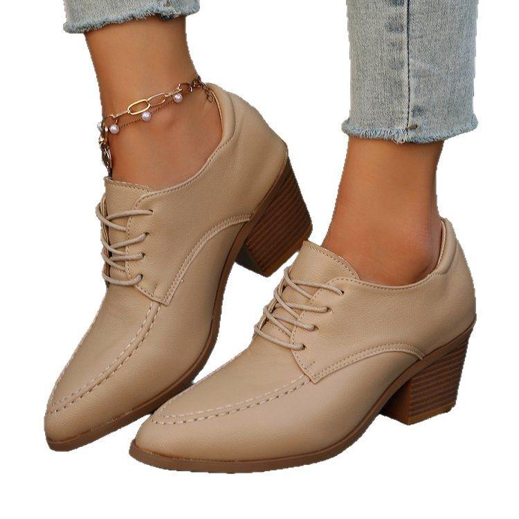 Модные мягкие кожаные туфли на среднем каблуке с ремешками, одинарные туфли на толстом каблуке, четыре маленьких кожаных туфельки, женская обувь оптом