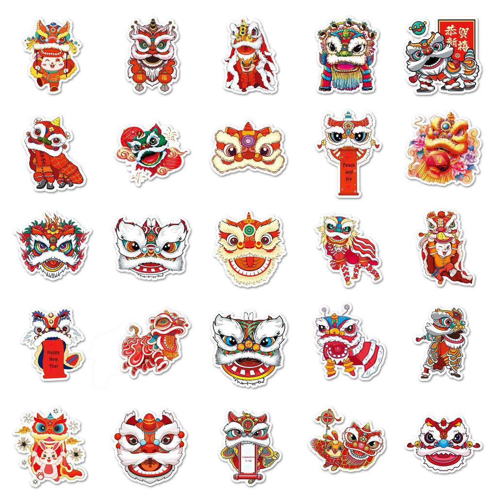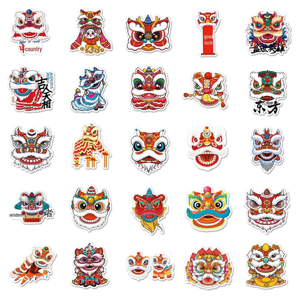 50 наклеек с изображением китайского танца льва - новогоднее украшение, водонепроницаемые, дизайн National Tide