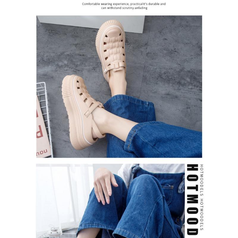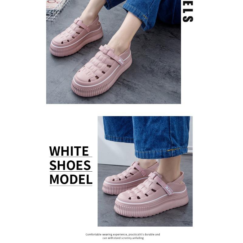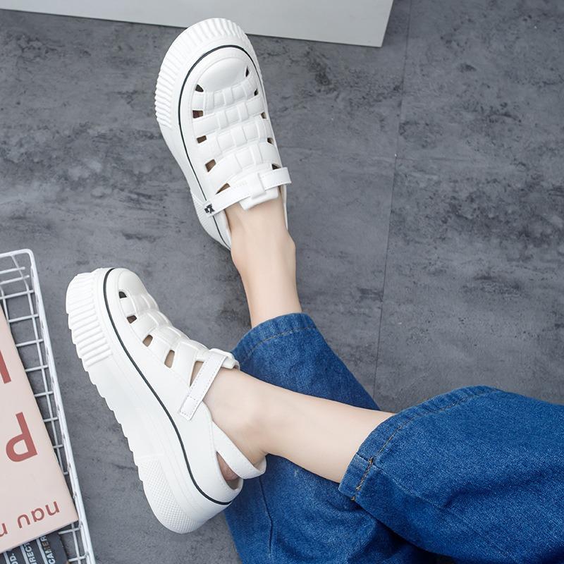 Женские сандалии New Roman Shoes Woven Thick Bottom Inner High White Shoes