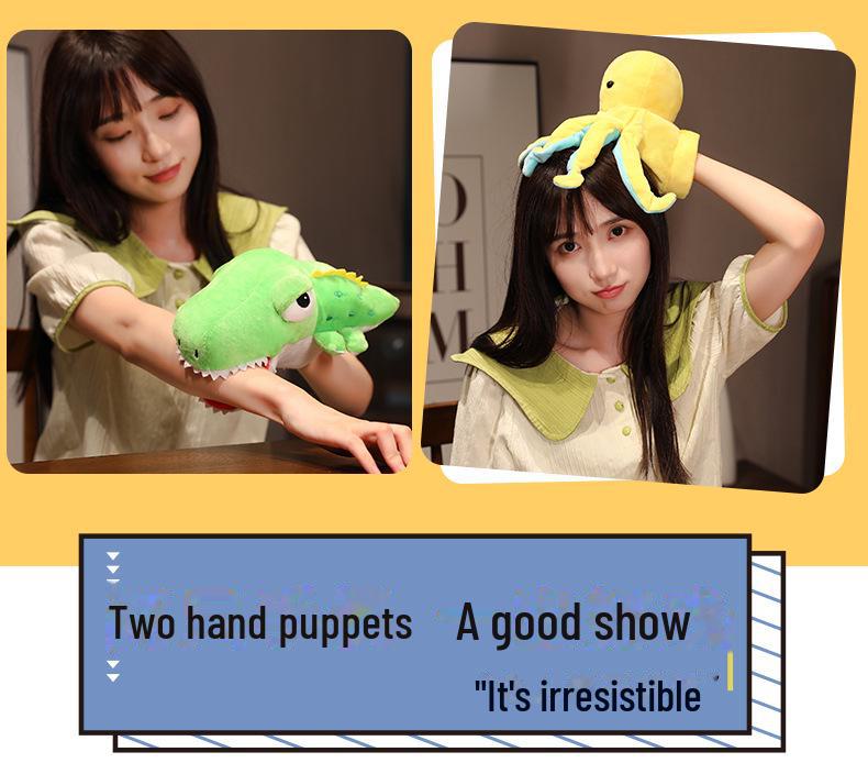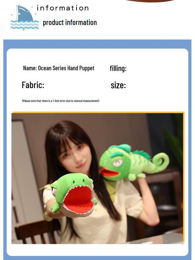 Анимированные плюшевые куклы-марионетки в виде морских животных: Акула, рыба-клоун, касатка — движения рта, игра родителей и детей