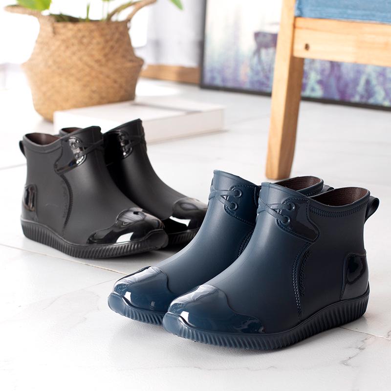 Мужские блестящие повседневные резиновые сапоги с низким верхом - Водонепроницаемая обувь на толстом низком каблуке — купить товар онлайн с бесплатной доставкой по всему миру!