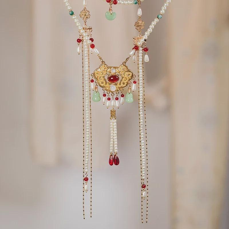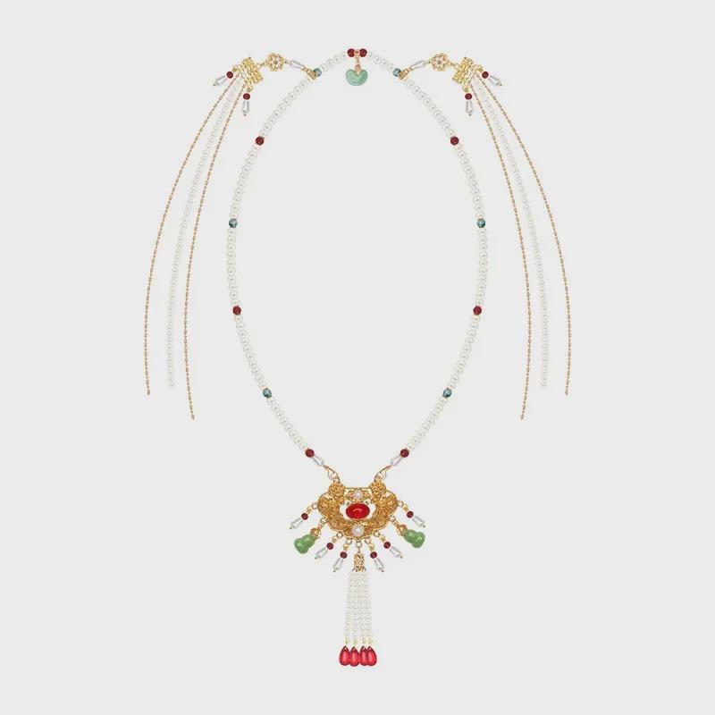 Красивый костюм пьяного человека: Ретро ожерелье с жемчужной подвеской, юбкой с лошадиным лицом и воротником иньло