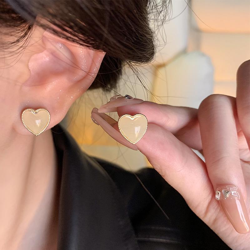 Серьги в форме сердца из серебра S925 пробы для женщин и студентов — простой и универсальный дизайн