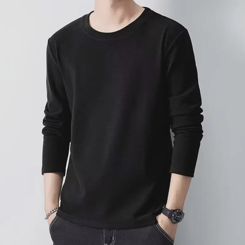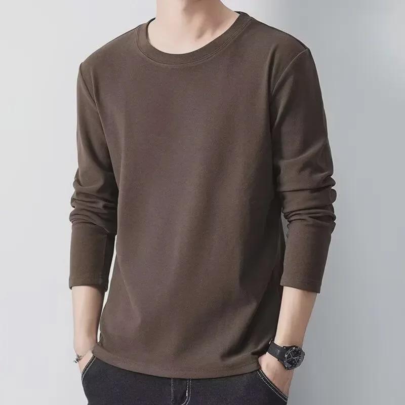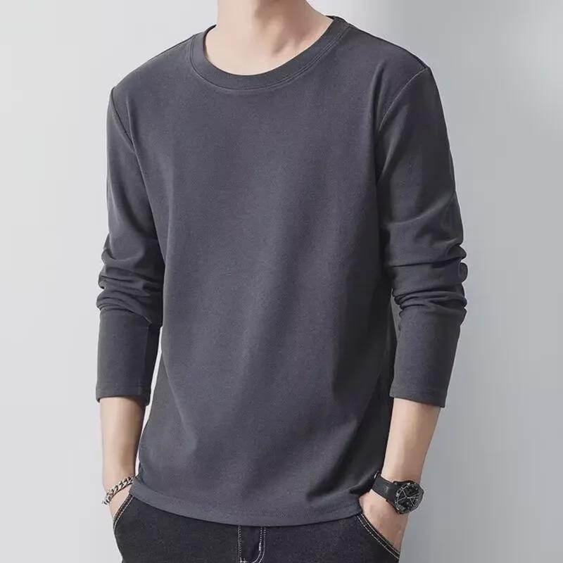 Мужская бархатная футболка с длинным рукавом облегающего кроя - Теплая, однотонная, с круглым вырезом, тренд осени/зимы