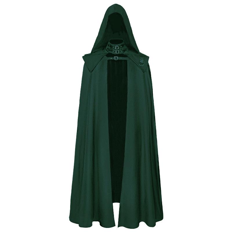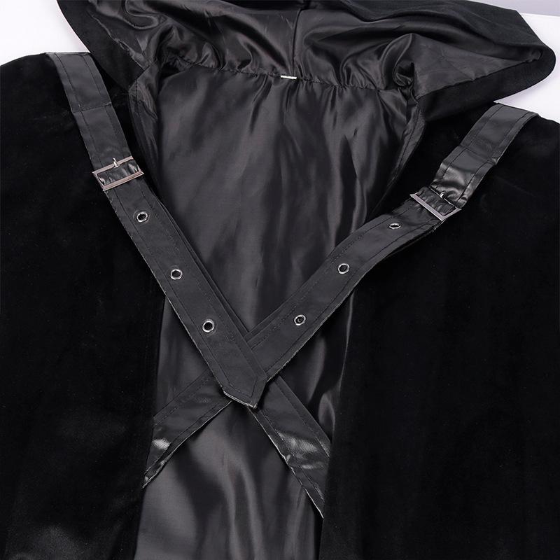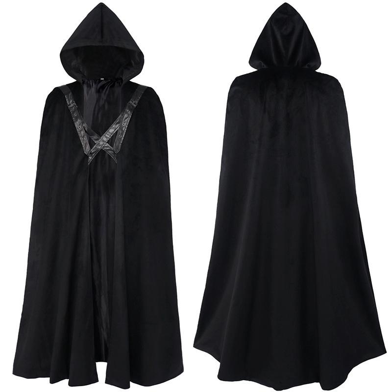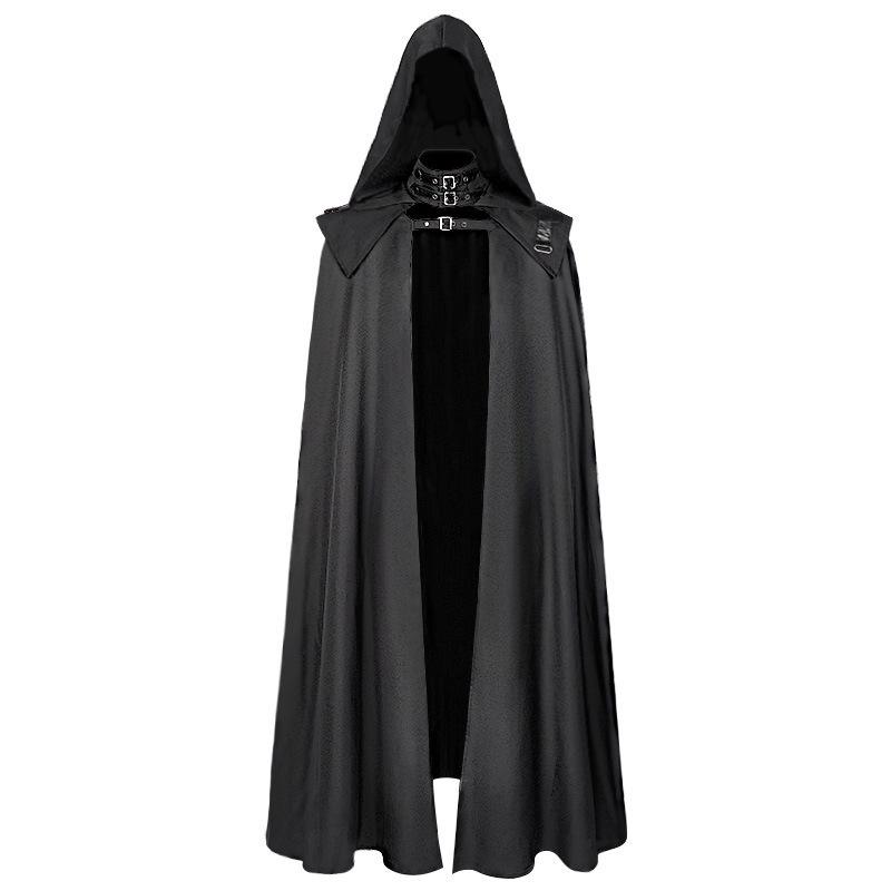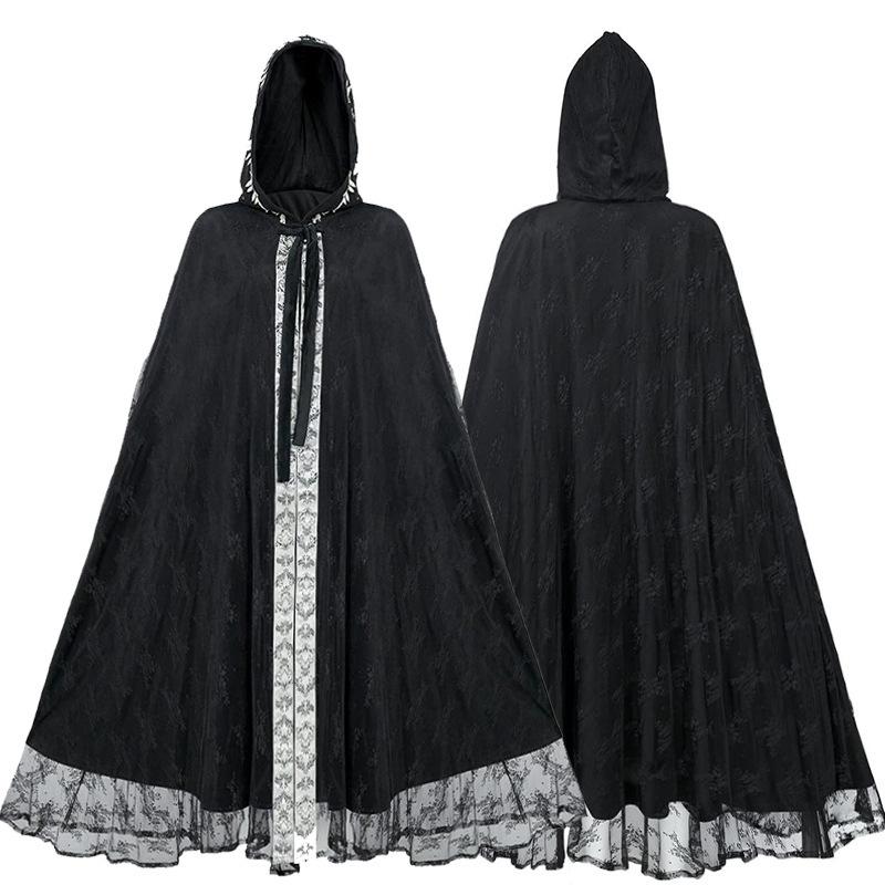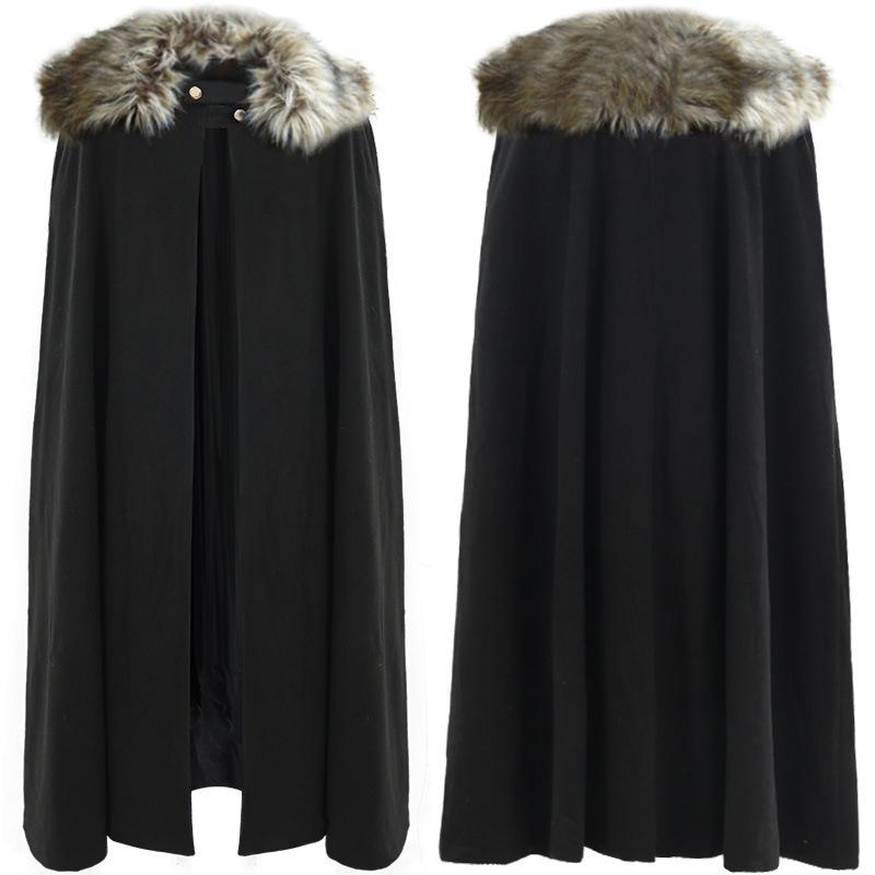 Готический средневековый ретро-плащ 2025 года с двухслойным капюшоном и меховым воротником