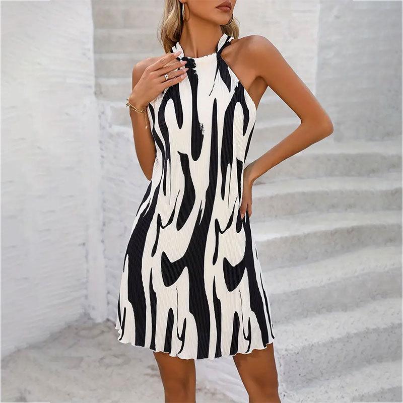 Женское летнее элегантное плиссированное платье с принтом и свисающим вырезом, свободное платье, персонализированные короткие платья без бретелек на бретелях