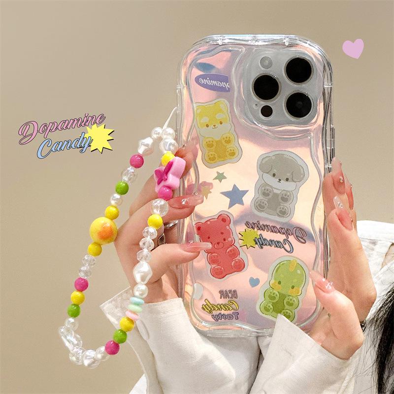 Чехол Zhitai для iPhone 16 Pro с кремовым узором Apple 15 и цепочкой для телефона, совместим с моделями 12, 14, 6/7/8.