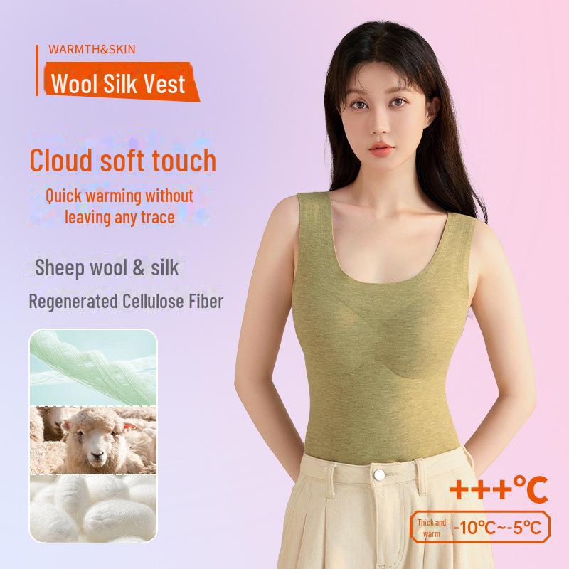 Женский теплый жилет из шерсти и шелка с нагрудной накладкой, немецкий бархат, отшлифованный, утепленный, бесшовный, без рукавов - идеально подходит для осени и зимы.